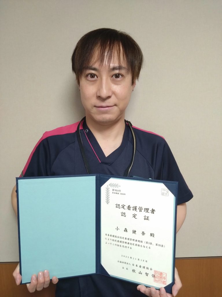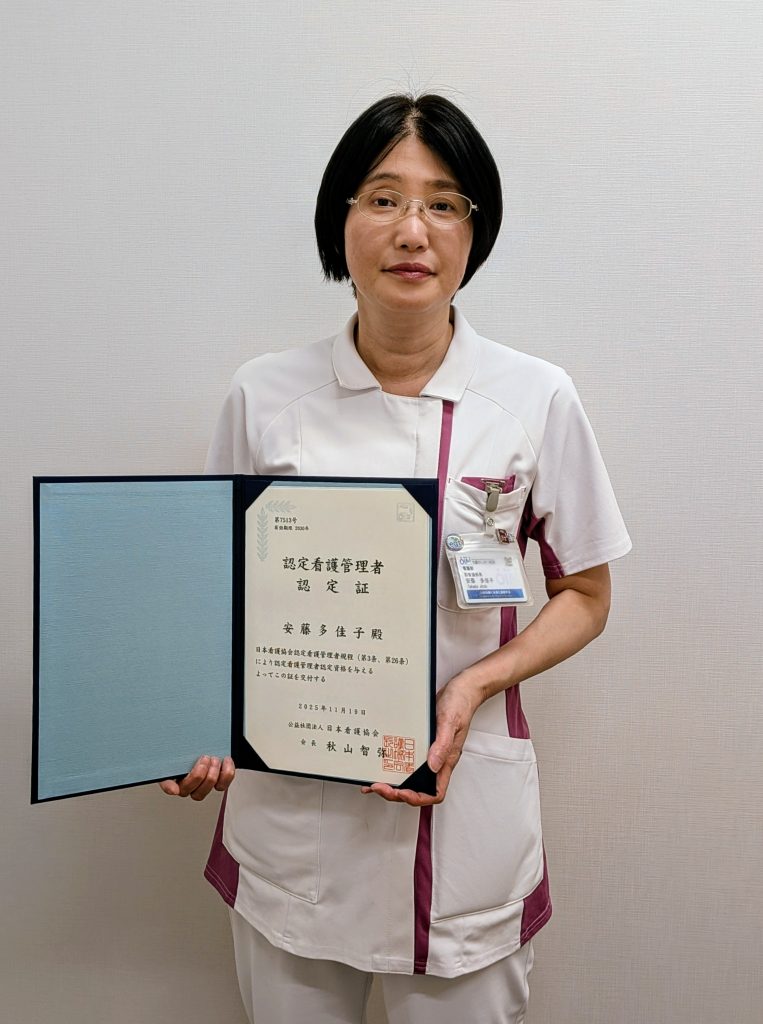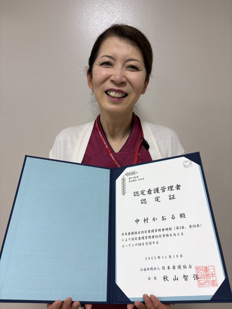 今後は認定看護管理者として、組織の発展と地域医療に貢献できるよう努めていきたいと思います。